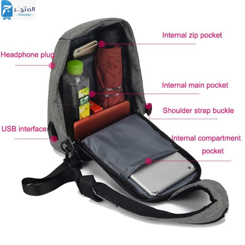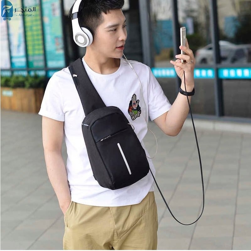 شنطة كروس مضادة للسرقة بمنفذ USB و سماعة رأس حقيبة بكتف واحد سهلة الحمل